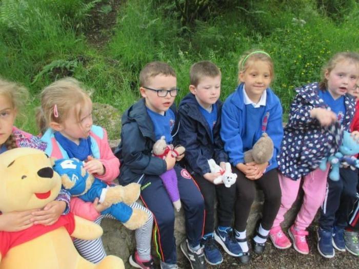 Our Year 1 pupils (and their teddies) had a wonderful day at An Creagan ‘Wild Woods.’ Although the children were wet and muddy, they had a thoroughly enjoyable experience!!! It was evident to see the active learning taking place as they made chocolate mud pies, went digging for rocks, climbed the mountain and went fishing for creatures.